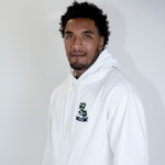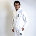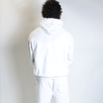 Spandex in the ribbing at the cuff and sleeve. Double needle stitching all over.