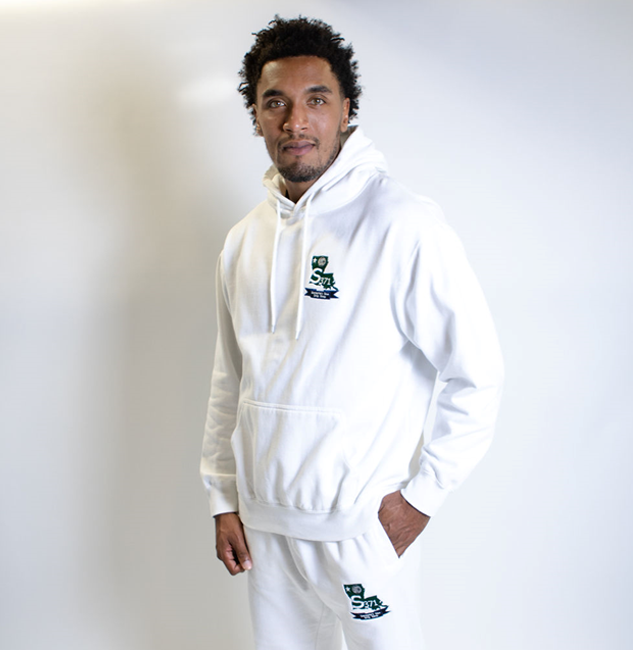 Spandex in the ribbing at the cuff and sleeve. Double needle stitching all over.