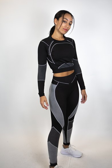 Women’s 2-Piece Crop Long Sleeve Top and Leggings seamless set.