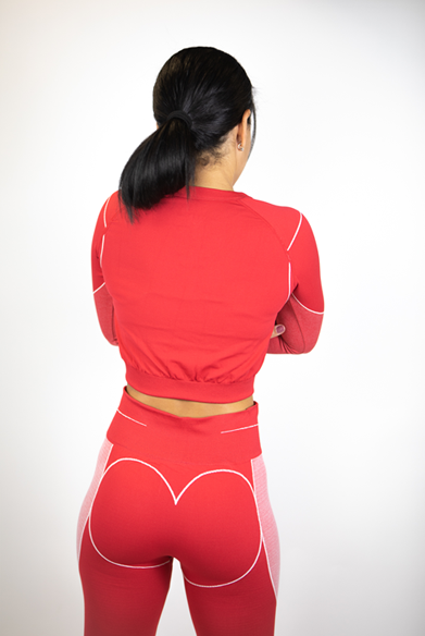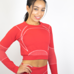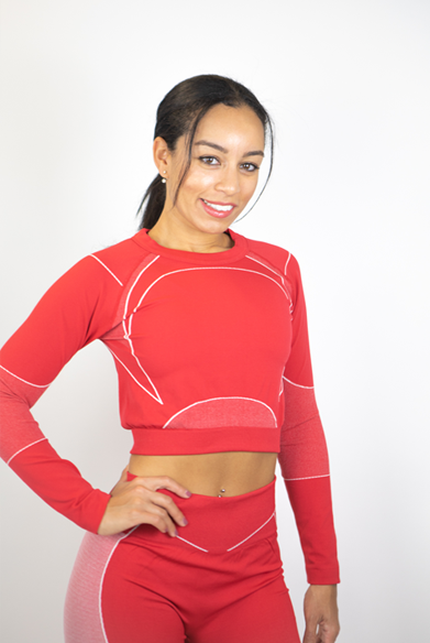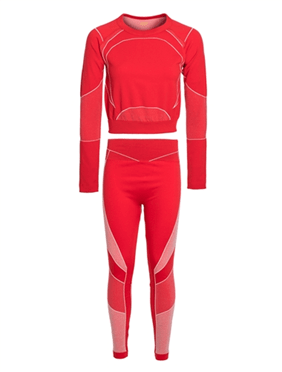 Features: Women’s 2-Piece Crop Long Sleeve Top and Leggings seamless set.