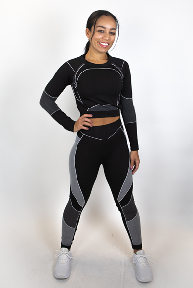 Women’s 2-Piece Crop Long Sleeve Top and Leggings seamless set.
