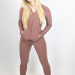 Features: Women’s honeycomb Zip hoodie and legging with trendy ruched back detail
